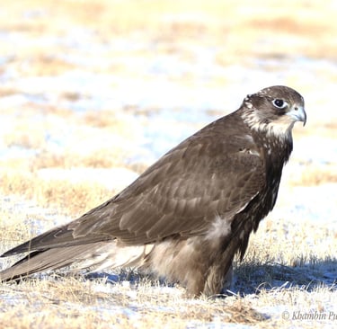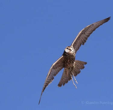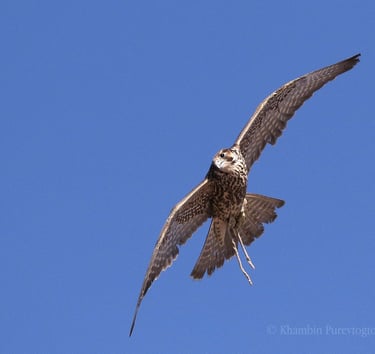 In 2018, Altai falcon (Falco cherrug altaicus) pursuing the game, trainer Jorj photos by ©Purevtogtokh Khambin