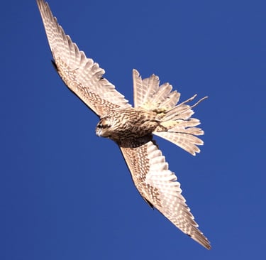 I failed on partridge hunting before using a Saker Falcon, because Sakers catch small prey and after are likely to carry. The Altai is naturally a pursuit falcon and this behavior makes it suitable in the type of falconry employed in Mongolia. Flight technique is very fast and direct when attacking to its prey. Most hunting is carried in open steppe areas, but wide variety of techniques are used to capture prey.