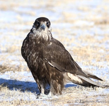 In my experience I consider that the Altai Falcon is certainly different from Saker Falcon (Falco cherrug milvipes) and Northern Gyrfalcon (Falco rusticolus). The Altai falcon breeding range is relatively limited through Central Asia to the Altai mountain range and Sayan Mountains. These areas overlap the breeding areas of the Saker Falcon and fall within the migration range of Gyrfalcon. These two species of falcons Altai and Saker have the same choice of habitat, both prefer the open ground where Brandt’s vole, small passerines are to be found. Recently we have been working on the genetic study of Altai Falcons based on DNA information in Mongolia. I am hopeful that important results will be discovered after this has done because it is first DNA study on Altai Falcon. I would like to explain the hunting technique and big advantage of Altai Falcon compared with Saker Falcon based on my own falconry experience. First, Altai dark Falcon behaves aggressively, appear to have superior intelligence, are brave and use aerial high-speed pursuit more than is normally the case with Sakers. Freshly trapped Altai Falcons sometimes feed very quickly on the fist, tend to be less “hissing” and much easier to train. When training with the lure the Altai directly flies and does not hesitate in attack like the Saker. I have been flying a wild female Altai Falcon since last year. I named to her as Alpha-1, she was quick to learn everything, and hunts some kinds of grouse species, Partridge and Black Grouse.