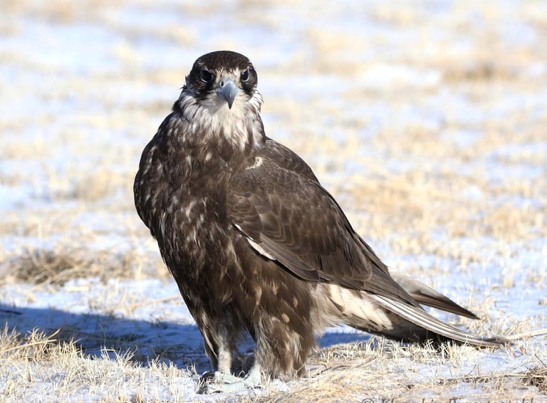 Its taxonomy is poorly studied sometimes considered subspecies of Saker Falcon or a naturally occurring hybrid between Gyrfalcon and Saker Falcon. However, hybridization among falcon species is rare in nature, but there some existing occurrence. Its morphology combines Northern Gyrfalcon and Saker Falcon but more like a Gyrfalcon in that it has a long-heavy bill, large talons, neatly marked wing pattern, uniform chest pattern. However single morphology cannot prove it is independent species from Saker/Gyrfalcon which are completely dark-brown or grey-brown plumage, bluish tinged bare parts, head and bill more attenuated appearance, more barred trousers, underparts are regularly barred dark almost complete dark on juvenile individuals, wing patterns are more uniform compared with Dark morph Saker Falcon.